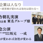 テーマ 企業は人なり〜経営者が変われば会社が変わる〜第一部 活力朝礼実演当会員の企業様で、既に「活力朝礼」を実施している東名グループ様に実...