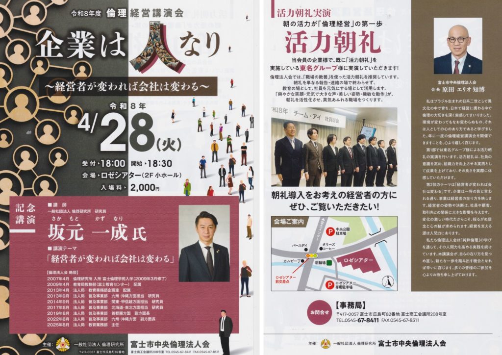 倫理法人会では、「職場の教養」を使った活力朝礼を推奨しています。